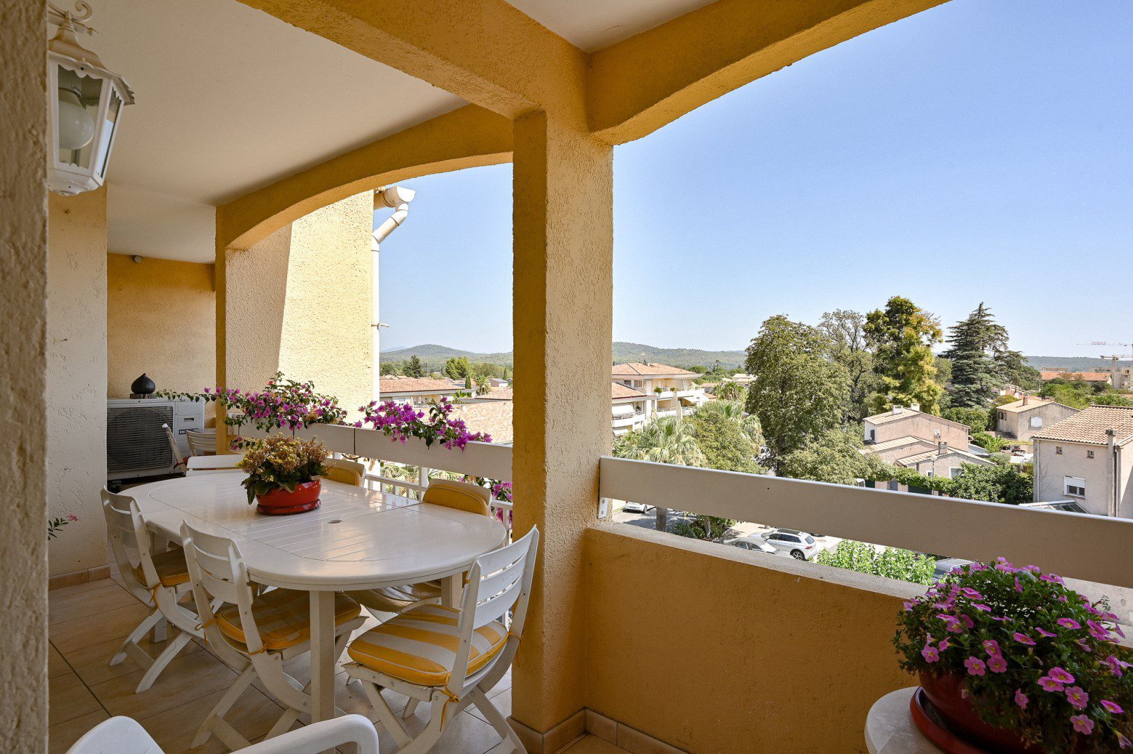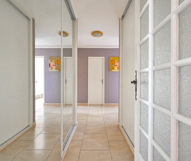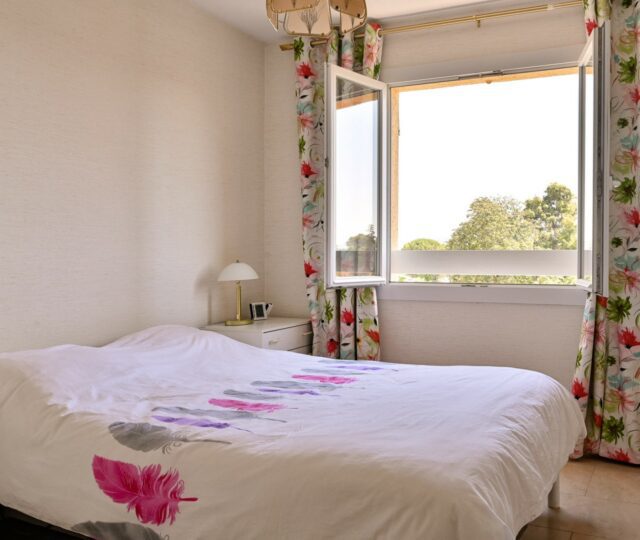 Dans un petit immeuble à dimension humaine (3 étages) sécurisé par 2 portes avec interphone. Appartement situé au 3ème et dernier étage sans ascenseur. Appartement entièrement rénové, prestations de qualité, aucun travaux à prévoir. Garage ouverture automatisé, grand parking à l’arrière de la résidence , à proximité des commerces, écoles, jardin public, centre ville, accès autoroute Appartement comprenant 4 chambres dont 3 avec placards + 2 grands placards dans le couloir. 1 salle de bain + 1 salle d’eau. Grande cuisine ouverte, équipée avec plan de travail en granit. Salle à manger + séjour donnant sur le balcon Très grand balcon de 17 m2 exposition est, belle vue. Isolation phonique + double vitrage. Entièrement climatisé. Une cave de 6 m2 saine.