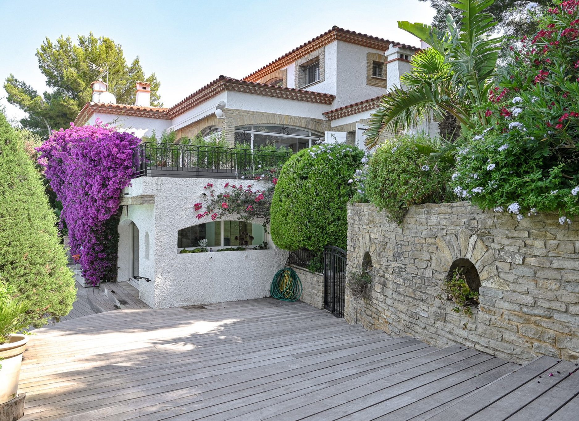 Magnifique villa d’une superficie totale de 537m2 sur plus de 2000m2 de terrain arboré, dans un quartier calme et prisé entre la mer et la forêt, un chemin privé, accessible en voiture, vous fera découvrir des sentiers de randonnées et débouchera sur une anse de sable noir. Elle fait face aux sablettes et en arrière-plan le majestueux Cap Sicié, son emplacement en fait d’elle un bien rare. Cette villa se déploie, sur 3 niveaux communicants, de 19 pièces, 8 chambres dont 3 suites parentales avec dressing, 6 salles d’eau, 2 cuisines, une salle de cinéma et de musique, une salle de sport avec son jacuzzi, une buanderie, une cave.. à l’étage principal en rez de jardin vous trouverez un impressionant séjour cathédrale de plus de 60m2 avec son insert, une salle à manger, donnant sur une grande terrasse en L, attenante à une belle cuisine moderne et équipée. Un espace composé de 3 chambres, deux salles d’eau et d’un salon, complète ce niveau. Depuis l’entrée principale en rez de jardin, vous accèderez par un très bel escalier en pierre au 1er étage et à 2 trés spacieuses suites parentales avec vue mer, dotées chacune d’un dressing. Au rez de chaussée vous pourrez profiter en famille ou entres amis d’une séance privée dans la salle de cinéma, suivie de cours de musculation ou fitness dans la salle de sport avant de vous détendre dans le jacuzzi; un espace coiffure, un cellier, une cave, une buanderie sont également à ce niveau. De plus cet étage comprend un appartement indépendant de plus de 120m2 offrant 3 autres chambres, dont une suite parentale avec dressing ainsi qu’un spacieux séjour lumineux de plus de 45m2 avec une cuisine équipée. Cet espace donne accès à une immense piscine à sel, sécurisée et son pool-house, clôturant ainsi ce niveau. La villa entièrement sécurisée dispose de climatisations réversibles à tous les niveaux, de panneaux photovoltaïques, d’un parking intérieur équipé de prises électriques pouvant accueillir 3 véhicules. Taxe foncière 4000EUR/an Honoraires à la charge du vendeur. Date de réalisation du diagnostic énergétique : 19/12/2022 Montant estimé des dépenses annuelles d’énergie pour un usage standard: entre 1880EUR et 2610EUR par an. Consommation énergie primaire : 71 kwh/m2/an